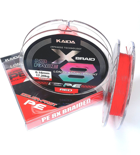 Плетеный шнур красный KAIDA X8 JAPANESE TECHNOLOGY 150м 0,16мм плетенка кайда красная