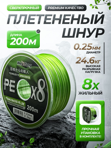WeiYang Плетёнка для рыбалки 8 жильная 200 метров 0.25 мм