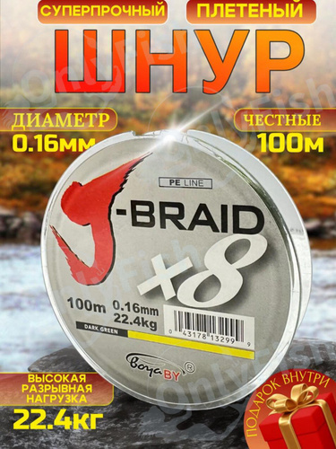 Плетеный шнур для рыбалки леска плетенка для спиннинга и фидера, троллинг 8 жильная 0.16 мм #PE 1 100 м