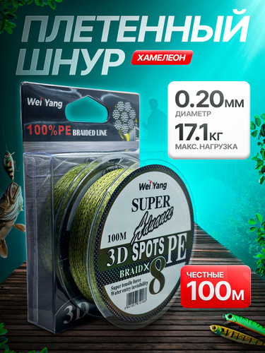 WeiYang Плетенка для спиннинга 8 жил 3D хамелеон 0.20мм 100м 17.1 кг
