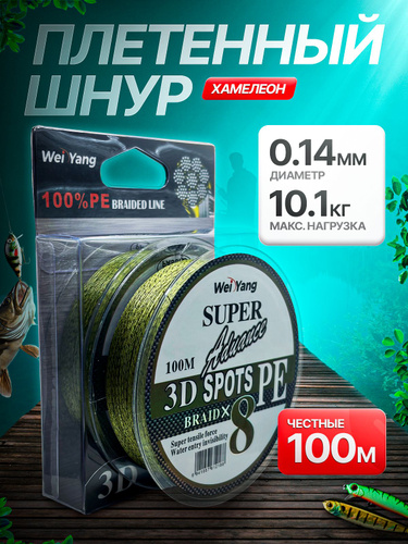 WeiYang Плетенка для спиннинга 8 жил 3D хамелеон 0.14мм 100м 10.1 кг