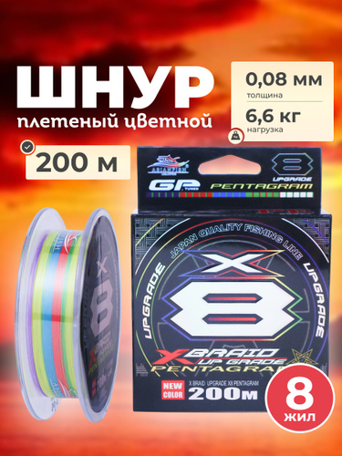Плетеный шнур для рыбалки 8 жильный 200 м, 0.20 мм, разноцветный