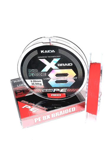 Плетеный шнур красный KAIDA X8 JAPANESE TECHNOLOGY 150м 0,20мм плетенка кайда красная
