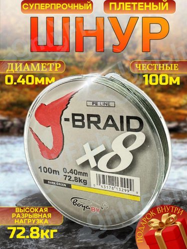 Плетеный шнур для рыбалки леска плетенка для спиннинга и фидера, троллинг 8 жильная 0.40мм #PE 6 100 м