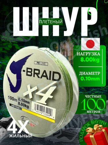 Плетеный шнур для рыбалки леска плетенка для спиннинга и фидера 4 жильная 0.10 мм/8кг #PE 0.4 100 м