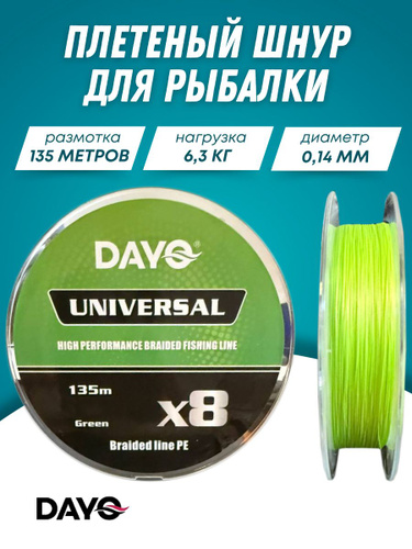 Плетенка для спиннинга / Плетенка для фидера Dayo X8 PE 0.14мм. 135м. 8 нитей
