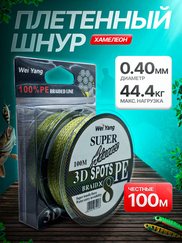WeiYang Плетенка для спиннинга 8 жил 3D хамелеон 0.40мм 100м 44.4 кг