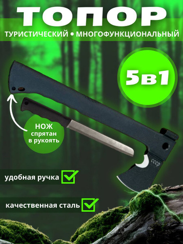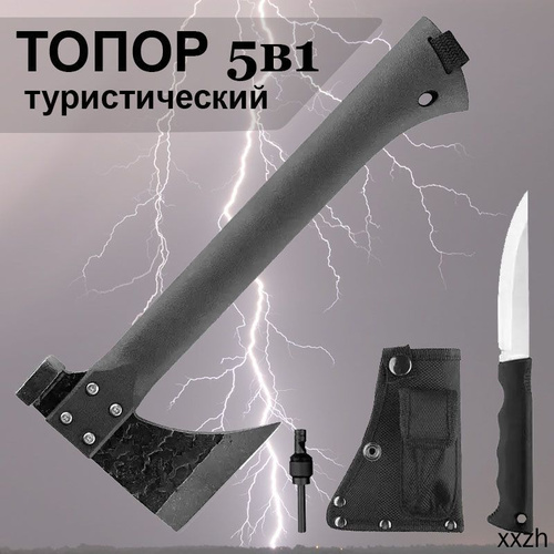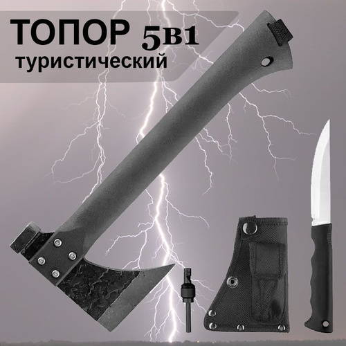Топор туристический 5в1 с ножом, свистком, чехлом
