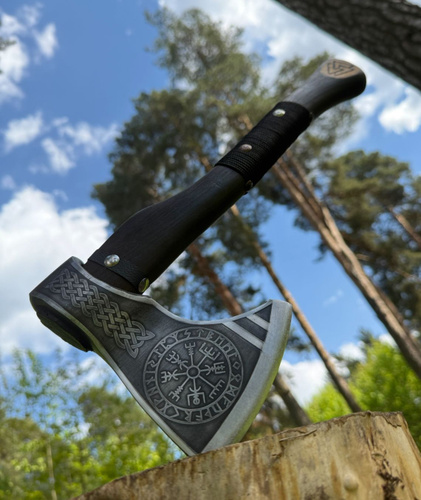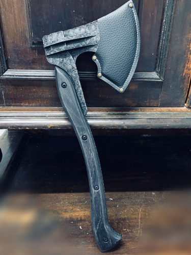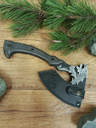 Топор тактический Сварог кованый, сталь СТ45, рукоять ясень, кожаный чехол. Для охоты и туризма.