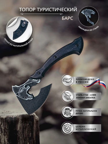 Топор туристический Пикник Кавказ "Барс", колун походный охотничий для дров, мяса и костей подарочный