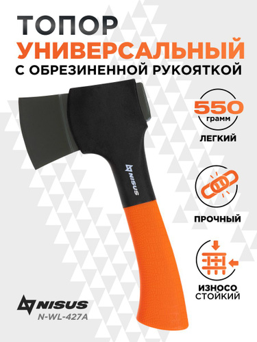 Топор Торнадо 520 гр. универсальный, туристический, походный, садовый с обрезиненной рукояткой Nisus