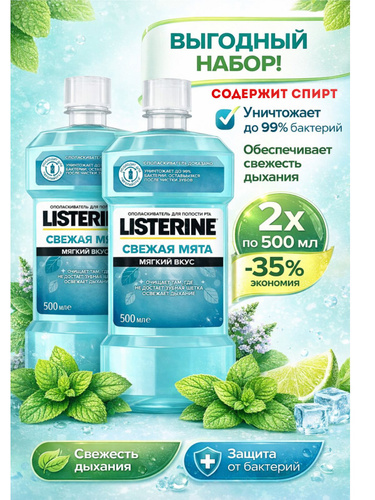 Listerine ополаскиватель для полости рта свежая мята 500 мл
