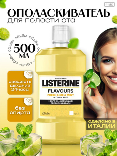 Listerine Ополаскиватель для полости рта Fresh Lime и Mint свежий лайм и мята 500 мл