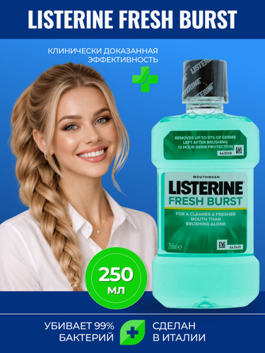 Ополаскиватель для полости рта Listerine Fresh Burst, антибактериальный эффект и укрепление эмали, 250 мл