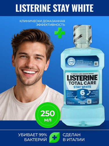 Ополаскиватель для полости рта Listerine Total Care Stay White, мятный, 250 мл