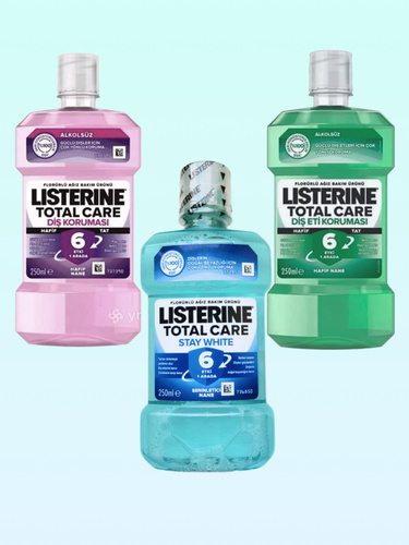 Listerine, набор из 3х штук Total Care, без спирта + stay white, со спиртом , по 250 мл. Ополаскиватель для полости рта.