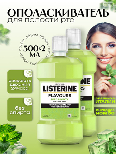 Listerine Ополаскиватель для полости рта 500 мл Mild и Minty набор 2шт Мягкий и Мятный