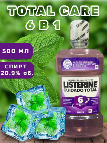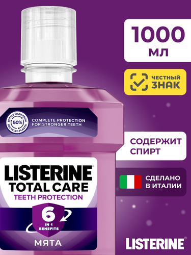 Listerine ополаскиватель для полости рта Total Care 6в1 антибактериальный, для зубов и десен, 1 л, с содержанием спирта