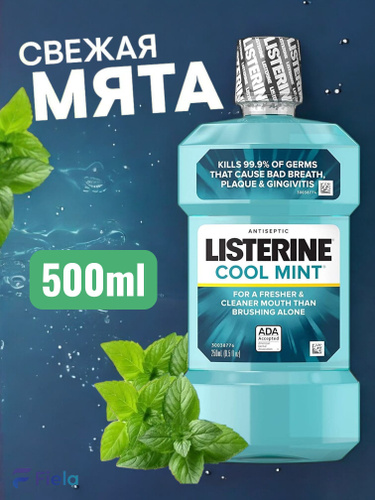 Listerine Ополаскиватель для полости рта Cool Mint антибактериальный, 500 мл (содержит спирт)