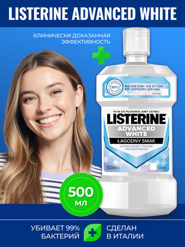 Ополаскиватель для полости рта Listerine "Advanced White Mild", 500 мл, без спирта