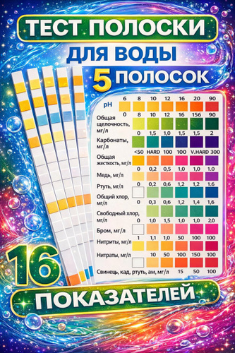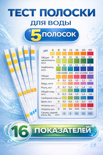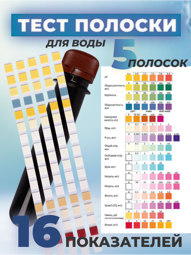 Тест полоски 16 в 1 для определения качества воды, 5 полосок