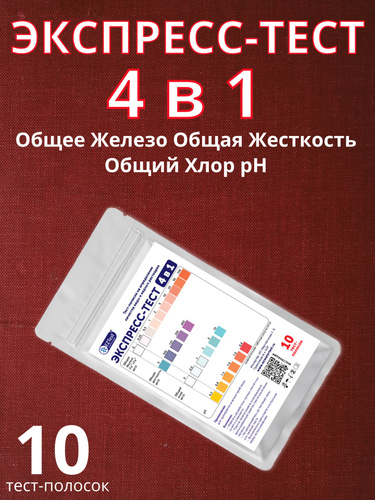 Экспресс-тест воды 4 в 1 Общее Железо Fe2+ и Fe3+Общая Жесткость Общий Хлор pH