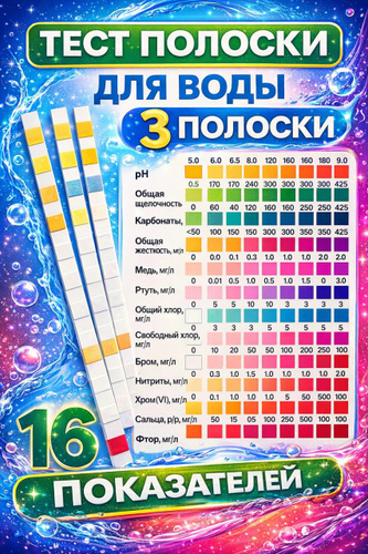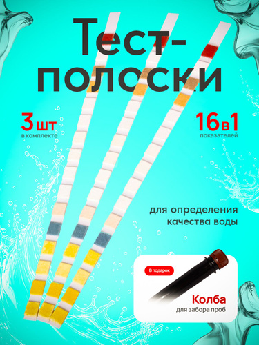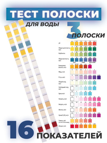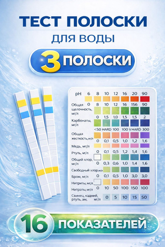 Тест-полоски 16 в 1 для определения качества воды, 3 полоски