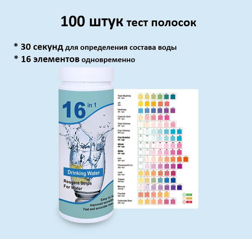 100 шт. Тест-полоски для проверки качества воды 16 параметров