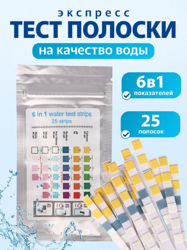 Тест-полоски 6 в 1 для определения качества воды, 25 шт.