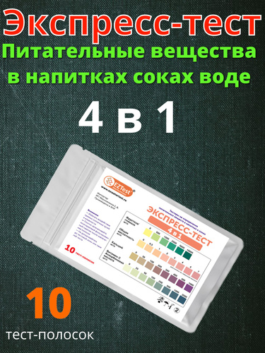 Экспресс-Тест 4 в 1 на определение питательных веществ в воде соках и напитках (Кальций, Витамин С, Фруктоза/Глюкоза, Общая кислотность)