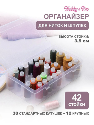 Органайзер для ниток 42 держателя, 23,5x13,5x6,5 см, Hobby&Pro
