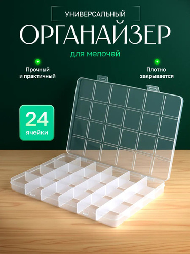 Органайзер для ниток прозрачный полипропиленовый 24 ячейки