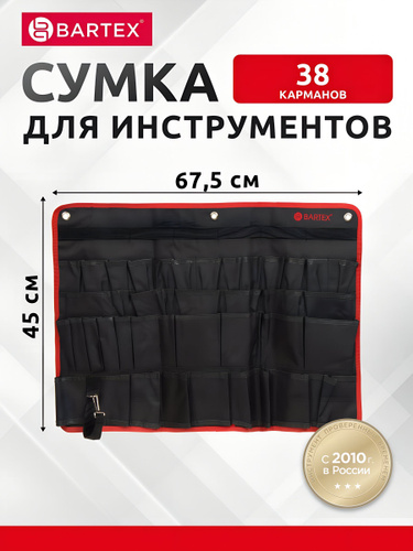 Bartex Сумка для инструментов, 45х67.5 см, текстиль, большая, с карманами, настенная