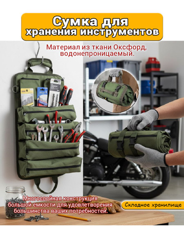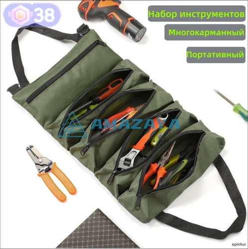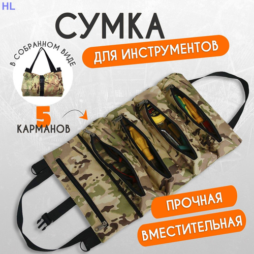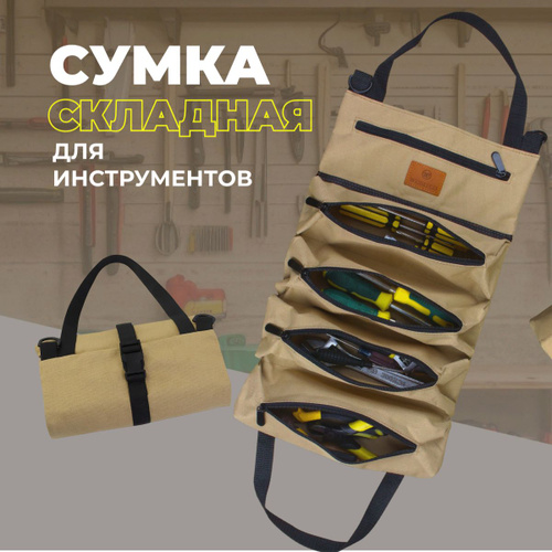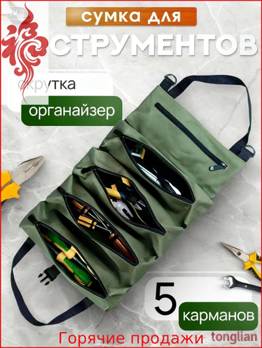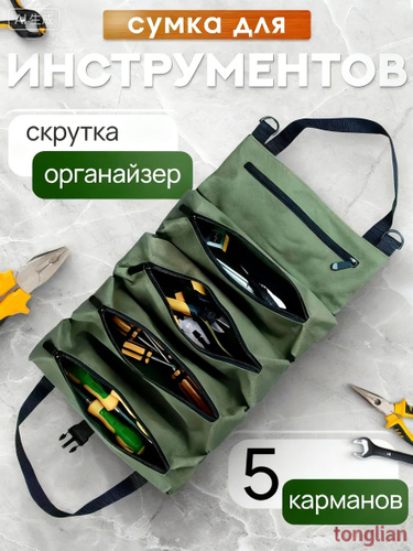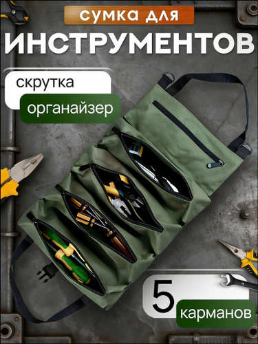 Сумка-органайзер для инструментов: Удобная скрутка с 5 карманами для идеальной организации!