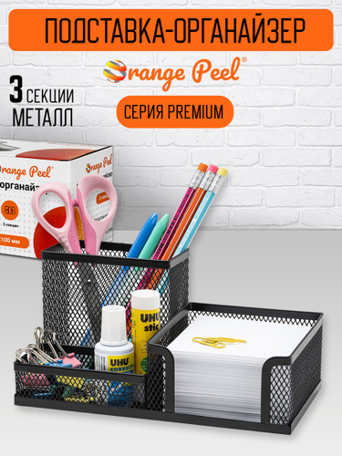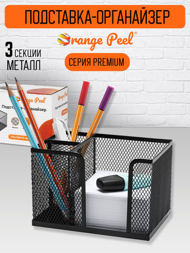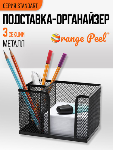 Подставка-органайзер для канцелярии ORANGE PEEL металлическая черная, 3 секции
