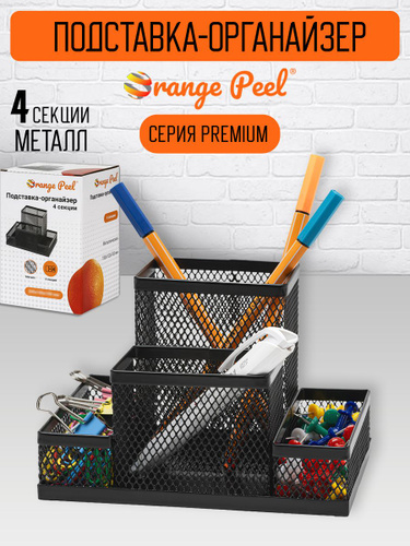 Подставка органайзер для канцелярии ORANGE PEEL металлическая черная, 4 секции