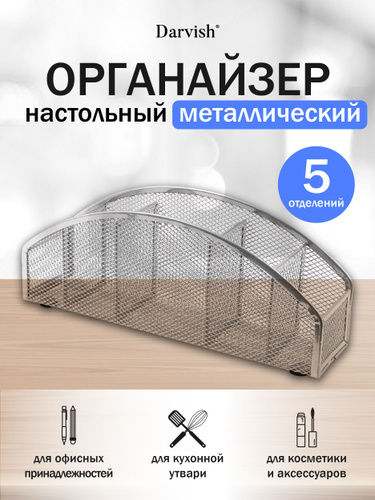 Органайзер настольный металлический 5 отделений серый