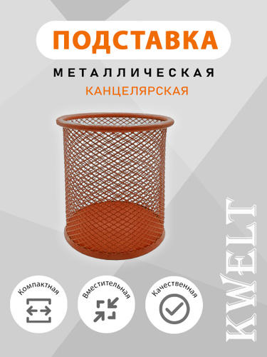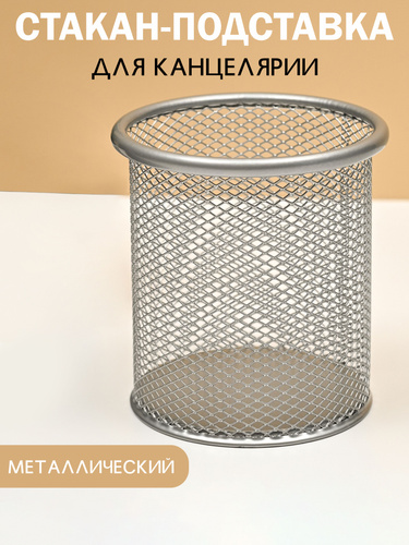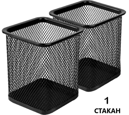 Один квадратный контейнер с металлической сеткой для канцелярских принадлежностей