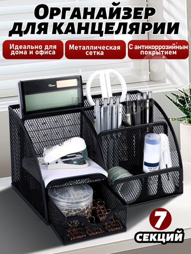Органайзер металлический для канцелярии и мелочей 7 секций настольный, подставка для ручек и карандашей на стол