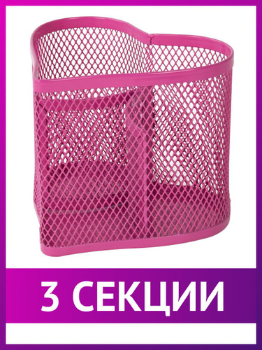 Органайзер для канцелярии настольный, подставка для ручек и карандашей на стол металлическая в форме сердца, 3 секции, розовый, Brauberg Germanium