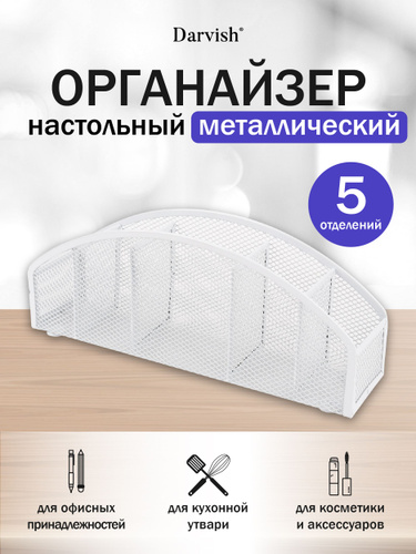 Органайзер настольный металлический 5 отделений белый
