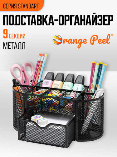 Подставка органайзер для канцелярии ORANGE PEEL металлическая черная, 7 секций