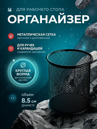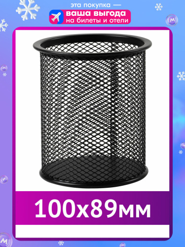 Подставка канцелярская для ручек, карандашей круглая, металл сетка органайзер для рабочего стола, для офиса цвет черный