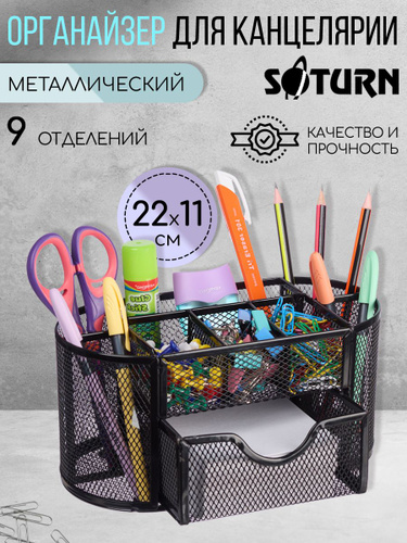 Подставка-органайзер для канцелярии SATURN металлическая черная,9 секций