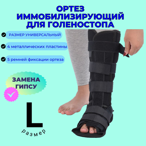 Ортез иммобилизирующий на голеностопный сустав, с металлическими пластинами. Тутор фиксирующий послеоперационный . Мужской / женский, левый /правый - (L)