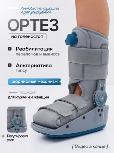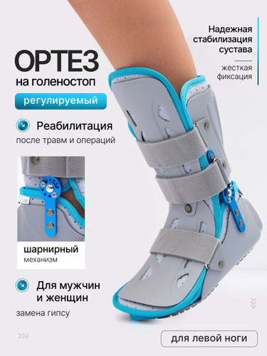 Ортез на голеностопный сустав жесткий с регулировкой, послеоперационный для голеностопа при артрите, артрозе, гематомах, ушибах и растяжениях. L. Левая.