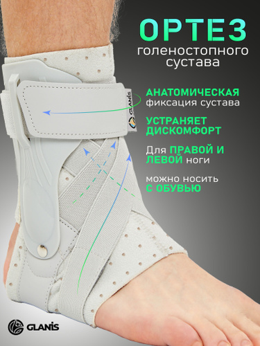 ORTGUT Фиксатор на голеностопный сустав с фиксирующими ремнями и открытой пяткой / Бандаж суппорт для защиты голеностопа от травм / Ортез на лодыжку для снижения боли при ушибах и растяжениях