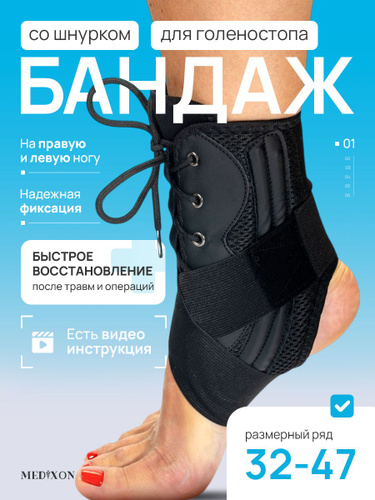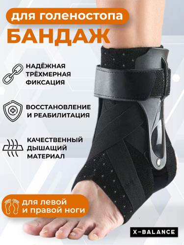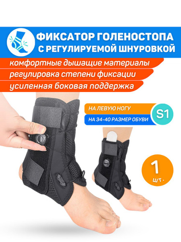 Фиксатор на голеностопный сустав с регулируемой шнуровкой / Бандаж суппорт с металлическими пластинами для защиты голеностопа от травм / Ортез на лодыжку для снижения боли при ушибах и растяжениях