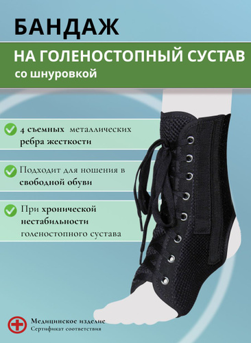 Бандаж на голеностопный сустав со шнуровкой и ребрами жесткости