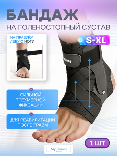 Ортез MyBalance жесткий на голеностопный сустав с пластинами, бандаж на щиколотку фиксирующий, размер S